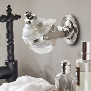 Ten stylowy dozownik mydła do montażu ściennego to prawdziwe dzieło sztuki, które uświetni wystrój Twojej łazienki lub WC. Obrotowy mosiężny uchwyt i umieszczony w nim owalny szklany pojemnik nie zajmują cennego miejsca na rancie umywalki. Co więcej – design w stylu retro wygląda po prostu pięknie. Zbiornik ma pojemność około 400 ml. Dozownik można odkręcić, aby wygodnie wlać mydło w płynie.