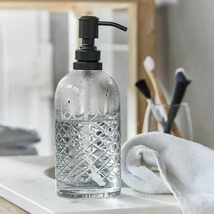 Ten piękny dozownik do mydła jest równie dekoracyjny, co trwały. Elegancki design w klimacie vintage wykonano z dmuchanego szkła z uroczym diamentowym szlifem i matową czarną żelazną pompką. Ten dodatek idealnie dozuje mydło. Uzupełnianie mydła zmniejsza ilość odpadów związanych z opakowaniami, więc dbasz też o środowisko. Możesz nawet wlać do niego domowej roboty mydło w płynie – i być jeszcze bardziej eko.