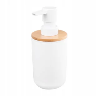 Dozownik mydła w płynie do łazienki biały SnowEfektowny wizualnie dozownik mydła w białym kolorze wykonany z wysokiej jakości tworzywa sztucznego i elementów z drewna bambusowego. Dozowniki mydła w płynie stały się integralną częścią większości łazienek. Białe dozowniki mydła są uniwersalne, ponieważ mogą być używane w wielu różnych aranżacjach. Produkt jest łatwy w utrzymaniu czystości i bezproblemowy w codziennym użytkowaniu. Wymaga jedynie uzupełniania mydłem w płynie od czasu do czasu.