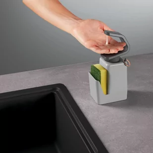 Kolor: szary Materiał: tworzywo ABS Wymiary: 11 x 8 x 22 cm (szer. x gł. x wys.) Dozownik detergentu w płynie z uchwytem na gąbkę Utrzymuj dozownik w czystości, naciskając go wierzchem dłoni Antypoślizgowa podstawa Z uchwytem na pierścionek Obrotowa głowica pompki