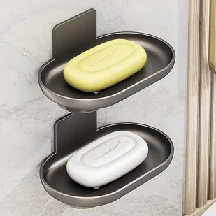 Podwójna mydelniczka prysznicowa, ścienna z odpływem, aluminiowa, stalowoszara