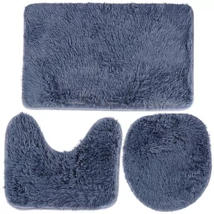 PRZYDATNY - Zestaw trzech dywaników łazienkowych. W zestawie: 1x dywanik o wymiarach 80 x 49 cm, 1x dywanik z wycięciem o rozmiarach: 49 x 40,5 cm oraz nakładka na deskę o wymiarach 50 x 47,5 cm. MIŁY W DOTYKU - Dywaniki zostały wykonane z poliestru w granatowym kolorze.