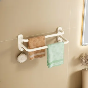 Aluminiowy wieszak na ręczniki do łazienek bez wiercenia, biała półka na ręczniki, podwójny wieszak 40 cm