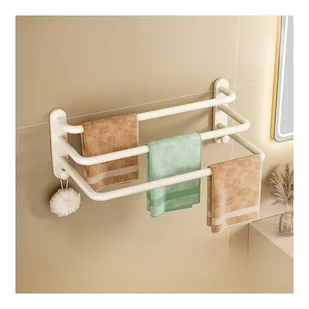 Aluminiowy wieszak na ręczniki do łazienki bez wiercenia, biała półka na ręczniki, potrójny wieszak 50 cm