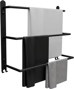 Trzy ramiona o różnej głębokości zapewniają prawidłową cyrkulację powietrza między zawieszonymi ręcznikami, co przyczynia się do utrzymania ich świeżości. Prosta, ale stylowa forma wieszaka idealnie komponuje się z różnymi typami łazienek, dodając im elegancji. Wieszak jest prosty w montażu, co pozwala na szybkie i bezproblemowe umieszczenie go na ścianie. Dzięki trzem ramionom oferuje więcej miejsca do wieszania ręczników, co jest szczególnie przydatne w przypadku większych rodzin lub w łazienkach gościnnych. Minimalistyczny design, maksymalna przyjemność: