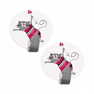 Zestaw haczyków Funny Cats do przechowywania ręczników w łazience czy kuchni. ozdobione postacią śmiesznego kota wytrzymała konstrukcja ze stali nierdzewnej odporny na dużą wilgotność łatwy montaż, usunięcie folii ochronnej i dociśnięcie do powierzchni ilość: 2 szt. obciążenie: do 5 kg kolor: biały, różnokolorowy materiał: