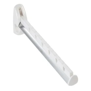 LEIFHEIT Wieszak naścienny AiretteWieszak naścienny Airette marki Leifheit pozwoli na komfortowe suszenie kilku sztuk odzieży w mieszkaniu lub przewietrzenie jej na świeżym powietrzu. Wykonano go z wytrzymałej, aluminiowej rurki i odpornego na warunki atmosferyczne tworzywa sztucznego, które nie odkształca się pod wpływem ciepła. Wieszak nadaje się więc do użytku wewnętrznego i zewnętrznego. Dzięki temu, że można go złożyć, przylega do ściany i nie zajmuje zbyt wiele miejsca. Biały kolor sprawia, że nie rzuca się w oczy.