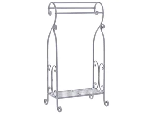 To akcesorium łazienkowe to ładny, ale praktyczny element wystroju twojej łazienki. Trzy poziome pręty są idealne do suszenia i wieszania ręczników, a półka pozwoli ci na jak najlepsze wykorzystanie dodatkowej przestrzeni. Dzięki szaremu kolorowi i eleganckiemu wzornictwu, uwydatnionemu ozdobnymi elementami i celowemu postarzaniu, stojak będzie pasował do łazienek w stylu klasycznym i vintage. Szczegóły: Typ produktu: Stojak na ręczniki Styl: