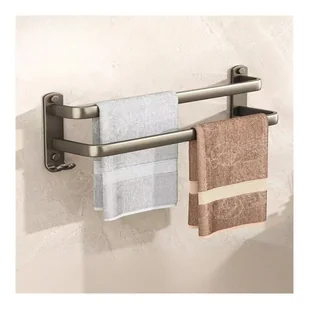 Szary podwójny wieszak na ręczniki, półka łazienkowa bez wiercenia, podwieszany aluminiowy wieszak na ręczniki, 40 cm, bez wiercenia