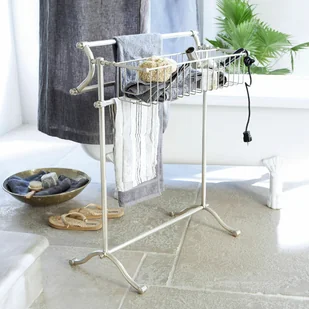 Szlachetny mosiądz z matowym wykończeniem w kolorze antycznego srebra. Z praktyczną półką ze stali nierdzewnej. Luksusowy i nostalgiczny charakter. Zamień swoją łazienkę w spa i ciesz się tym estetycznym, a także użytecznym projektem z urokiem vintage. Ręczniki, mydła, szczotki i inne akcesoria znajdą wystarczająco dużo miejsca na przestronnej półce, a także mogą być ułożone w atrakcyjny wizualnie sposób.