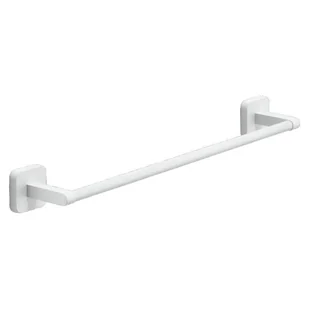 Wieszak na ręczniki 45 cm z serii Tonga w matowym białym wykończeniu, wykonany ze stali nierdzewnej i chromalu o wymiarach (szerokość x głębokość x wysokość) 45x6,9x4,7 cm. Mocowanie do ściany za pomocą dołączonych śrub i kołków lub za pomocą dwustronnego bio-kleju, o maksymalnym obciążeniu 7 kg, co pozwala uniknąć wiercenia otworów.