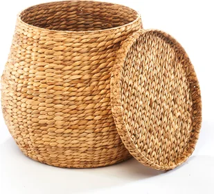 Nasz pleciony kosz na pranie od Kobolo wykonany z wysokiej jakości hiacyntu wodnego łączy w sobie naturalny urok z praktyczną funkcjonalnością - ręcznie robiony kosz jest idealnym rozwiązaniem do przechowywania brudnej bielizny w dobrym stylu. Kosz został wykonany z wytrzymałego hiacyntu wodnego, który został umiejętnie utkany w solidny splot - naturalne piękno i ciepłe, ziemiste odcienie hiacyntu wodnego nadają koszowi atrakcyjny wygląd. Oprócz funkcji kosza na pranie, ten wszechstronny kosz może być również do innych celów przechowywania - na przykład do przechowywania koców i poduszek w salonie lub do organizowania zabawek w pokoju dziecięcym. Zastosowanie hiacyntu wodnego nadaje temu koszowi na pranie nie tylko naturalne piękno, ale także wysoki poziom trwałości i odporności.