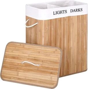 KOSZ BAMBUSOWY NA PRANIE DWUKOMOROWY 100LCHARAKTERYSTYKAWYKONANY Z NATURALNYCH MATERIAŁÓW - kosz wykonany został z naturalnego bambusa, natomiast wnętrze wyłożone jest wyciąganym lnianym materiałemUNIWERSALNY - dzięki pięknemu, na