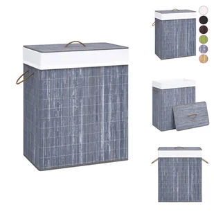 Kolor: szaryMateriał: bambus, tkaninaWymiary: 43,5 x 33,5 x 65,5 cm (szer. x gł. x wys.)Kształt: ProstokątnyPojemność: 83 litryZ wyjmowaną torbą wewnętrzną wykonaną z tkaninyUchwyt na pokrywieZ uchwytami po obu stronachZ 1 przegrodąWszechstronna opcja przechowywaniaLekki i łatwy do przenoszeniaSkładany dla łatwego przechowywaniaDuża pojemność do organizowania i przechowywania ubrańUwaga: