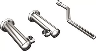 Komplet uchwytów uchylnych z rączką - Wymiary: 56 mm x 47 mm x 124 mm, rączka 220 mm - Produkt wykonany jest na bazie mosiądzu z dodatkiem stopu cynku i aluminium (ZnAl) - Całość pokryta jest powłokami galwanicznymi:
