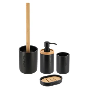Zestaw składający się z dozownika na mydło, mydelniczki, kubka i szczotki WC, pasujący do różnych aranżacji, funkcjonalny, a jednocześnie dekoracyjny dodatek do każdej łazienki