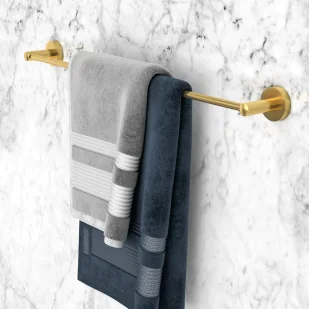 Opis produktu Reling, wieszak długi na ręcznik w kolorze złotym, wykonany z metalu. Wysoka jakość, unikalny design. W komplecie zestaw montażowy. Informacje techniczne Wymiary (szerokość, odległość od ściany) 63 cm x 5,5 cm