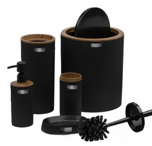 Zestaw łazienkowy Kely Round black/wood komplet do WC elegancki 5w1
