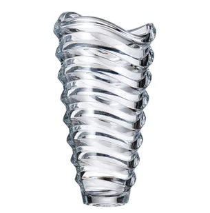 Elegancki wazon o unikatowym wyglądzie z krzyształowo-bezołowiowego szkła z Bohemii. Opakowana w oryginalny, ozdobny, granatowy karton. Długość: 18,6cm Szerokość: 14,8cm Wysokość: 33,6cm Pakowane 1szt/box, 4szt/krt Nadaje się do zmywarki.