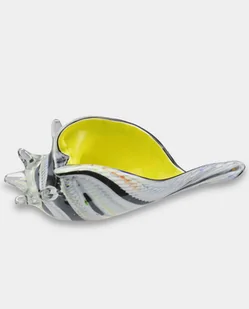 Ekskluzywna figurka ze szkła wykonana ręcznie w stylu weneckiego szkła Murano - muszla biała w czarne pasy z żółtym środkiem. Ta szklana rzeźba wykonana jest...