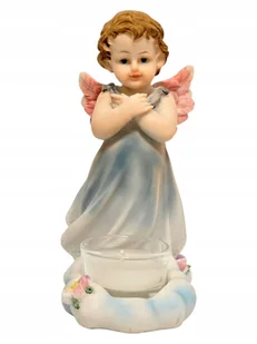 Figurka Aniołek Świeczka - Niebieska Sukienka, Różowe Skrzydełka, 17 cm. Opis: Wprowadź do swojego domu ciepło i spokój dzięki naszej uroczej figurce aniołka...