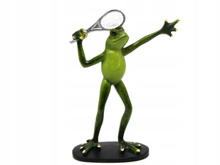FIGURKA DEKORACYJNA ŚMIESZNA ZIELONA ŻABA TENISISTA NA PREZENT Figurka dekoracyjna przedstawiająca żabę w dynamicznej pozie tenisisty. Żaba jest starannie wy...