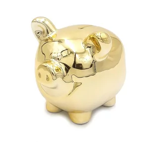 SKARBONKA ŚWINKA CERAMICZNA Urocza skarbonka świnka Idealna dekoracja domu w stylu glamour jak również nowoczesnym Pięknie ożywi dziecięcy pokój Znakomita do gromadzenia oszczędności Wspaniały pomysł na prezent Dostępny kolor: ZŁOTY Wymiary: Długość 12cm Szerokość 9cm Wysokość 9,5cm Pod spodem skarbonki umieszczona została gumowa zatyczka, która pozwala na łatwy dostęp do uzbieranych oszczędności. Na grzbiecie świnki znajduje się otwór na pieniądze.