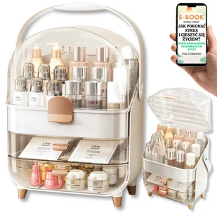 DUŻY ORGANIZER NA KOSMETYKI KUFEREK SZKATUŁKA NA BIŻUTERIĘ KOSMETYKI WIELOPOZIOMOWA BIAŁA KOSMETYCZKA TOALETKA PREZENT DLA KOBIET + EBOOK-1