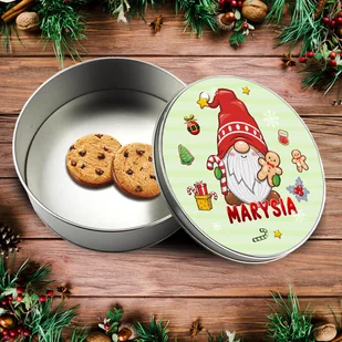 Metalowe pudełko na świąteczne słodycze z imieniem - Skrzat z piernikiem