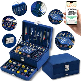 ORGANIZER NA BIŻUTERIĘ KUFEREK SZKATUŁKA NA BIŻUTERIE GRANATOWA PREZENT DLA NIEJ + EBOOK-1