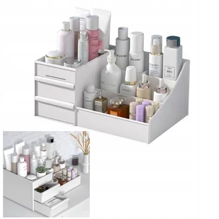 SZKATUŁKA NA KOSMETYKI ORGANIZER XXL Z SZUFLADAMI Elegancki, wytrzymały i wygodny organizer wykonany w neutralnym jasnym kolorze idealnie sprawdzi się w łazi...