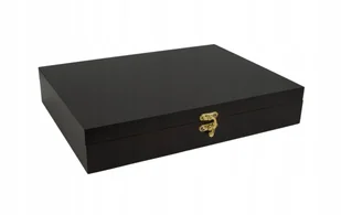 Szkatułka drewniana lakierowana na brązowo Wymiary zewnętrzne: Długość -32cm Szerokość -23,5cm Wysokość -6 cm Boki pudełka wykonane są z drewna sosnowego (gr...