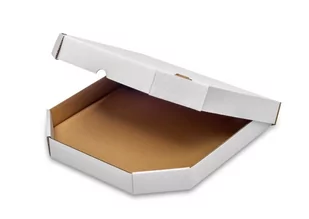 Karton na pizzę Solidne opakowanie transportowe do pizzy. Karton został wykonany z wytrzymałej trójwarstwowej tektury, dzięki czemu dostarczana pizza utrzymuje ciepło na dłużej. Sztywność oferowanego pudełka zapobiega złamaniu się pizzy podczas transportu i dostarczeniu jej w stanie nienaruszonym. Specyfikacja techniczna: Rozmiar: 320 x 320 x 40 mm Typ: