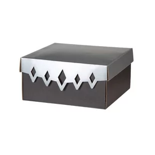 Pudełko prezentowe z wieczkiem z nadrukiem czarno - srebrnym ROMBY Kolorowe pudełko wieko-dno z czarno - srebrnym nadrukiem – doskonałe do prezentów. Pudełko idealnie sprawdzi się w roli opakowania na prezent dla bliskiej osoby. Wzmocniona konstrukcja i nadruk w technice offsetowej wpływa na jego atrakcyjny wygląd, a kolory czarny i złoty podkreśla elegancki charakter opakowania. Wymiary zostały dobrane tak, aby pudełko pomieściło m. in. kubek, filiżankę, kosmetyki, miody, herbatę, pierniki, świeczki i wiele innych.