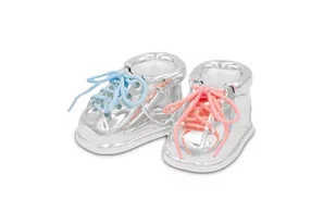 Wykonane z wysokiej jakości stali nierdzewnej Platerowane srebrem pr. 925 Wymiary jednego bucika: 6 cm x 3,8 cm Grawer na obu bucikach wliczony w cenę Zawiera sznurówki w dwóch kolorach do wymiany: dla chłopczyka i dziewczynki Całość zapakowana w eleganckie pudełko prezentowe