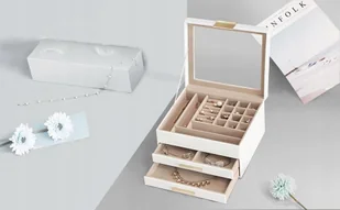 SZKATUŁKA NA BIŻUTERIĘ BIAŁA DUŻA SKRZYNKA KUFEREK Z SZUFLADAMI