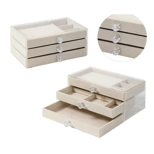 Bardzo funkcjonalny i elegancki kuferek/etui na biżuterię i zegarkiSzkatułka na biżuterię, kuferek transparentny welurowy Diamonds 3 szuflady PD152KCechy produktu:- Produkt fabrycznie nowy, wysokiej jakości.- Niezbyt duży, ale bardzo funkcjonalny i przemyślany tak, aby można było wygodnie przechowywać- Środek wyściełany jest miękkim pluszowym materiałem.- Szkatułka idealnie nadaje się na prezent. Jest niezwykle praktyczna.- UNIKATOWY DESIGN - przypadnie każdej kobiecie- posiada schowki na : pierścionki, kolczyki, naszyjniki i wiele innych.