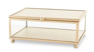 Szkatułka na biżuterię. Dekoracje z kolekcji Casablanka to przedmioty o różnych kolorach, fakturach i kształtach, które pomogą stać się niebanalnym tłem aranżacji stylizowanych wnętrz. Ozdoby z tej kolekcji podkreślają estetykę pomieszczeń i decydują o jego wyjątkowości. Podstawowe dane: Materiał: szklo, metal Kolor: