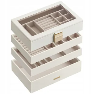 SONGMICS Szkatułka na biżuterię, 4 poziomy, taca na biżuterię, możliwość układania w stos, duże pudełko na biżuterię ze szklaną pokrywką, 17 x 28 x 18,3 cm, ...