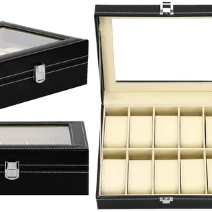 Szkatułka Na Zegarki 25X20X8 Cm Czarno-Kremowy Kuferek Z 10 Przegródkami Ekoskóra