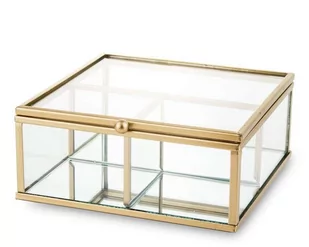 Szkatułka. Materiał: metal, szkło. Rozmiar: 6x13,5x14,5. Kolor: złoty. Dekoracje z kolekcji Casablanka to przedmioty o różnych kolorach, fakturach i k. . . Podstawowe dane: Materiał: metal, szkło Kolor: