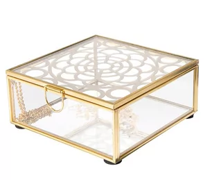 Szkatułka stanowi stylowy, elegancki dodatek, który może z powodzeniem zdobić toaletkę, komodę, a nawet stolik kawowy. Szklane pudełko marki Altom Design to świetny sposób na przechowywanie biżuterii i drobiazgów Elegancka, złota szkatułka może być wspaniałym prezentem dla kobiety Idealnie sprawdzi się na ślub do przechowania obrączek Minimalistyczny design sprawia, że wpasuje się do każdego wnętrza Dzięki szklanym ściankom i wieczku zawartość jest zawsze widoczna. Wymiary: 12x12 cm