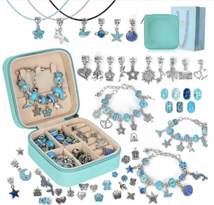 ZESTAW KORALIKÓW DO ROBIENIA BRANSOLETEK CHARMS 60szt SZKATUŁKA BIŻUTERIA