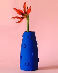 Wazon w mocnym kobaltowym odcieniu o strzelistej formie. Wspaniale rozświetli surowe, minimalistyczne wnętrze jak i wpasuje się w kolorową przestrzeń. Odpowiedni na pojedyncze kwiaty, jak i niet ...