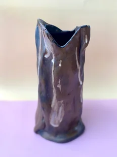 Ręcznie robiony wazon ceramiczny w kształcie tuby o falistej formie. W kolorze czekolady. Dodatkiem jest wypływające szkliwo w kolorze białym co nadaje efektu lekkości imprezowiczki na myśl słodko ...