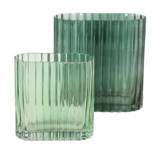 Wazony z zielonego szkła Tulipa - elegancja i oryginalność w Twoim wnętrzu Materiał: wysokiej jakości zielone szkło Wymiary: większy wazon 18 x 9 cm, mniejsz...