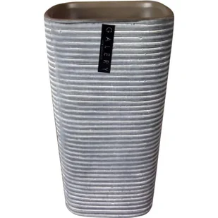 Wazon ceramiczny kwadratowy w prążki grafitowo-brą