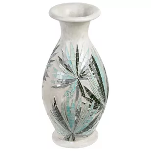 Wazon z ceramiki z roślinną mozaiką. Ten wysoki wazon podłogowy to elegancki dodatek, który będzie pasował zarówno do nowoczesnych, jak i tradycyjnych wnętrz. Dzięki uroczej szklanej mozaice ułożonej w liście z pewnością będzie wyróżniać się wśród wystroju twojego wnętrza. Nierówna kolorystyka i ręcznie robione detale nadają mu autentyczny, naturalny wygląd. Jeśli szukasz wyjątkowej dekoracji do domu, ten wazon będzie po prostu idealny.