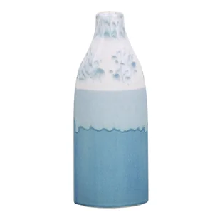 Wazon w kształcie butelki. Ten wazon w kształcie butelki podkreśli każdą aranżację. Posiada wspaniały wzór przedstawiający niebieski horyzont, wnosząc do wnętrza atmosferę wyciszenia. Użyj go jako samodzielny element dekoracyjny lub połącz z ulubionymi kwiatami. Ten wykonany z kamionki wazon w połyskującym wykończeniu jest wodoodporny i ma podkładki na spodzie, które zapobiegają zarysowaniom.