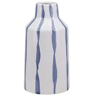 Ceramiczny wazon retro w kolorze białym z motywem niebieskich pasków. Ten ceramiczny wazon jest idealny do eksponowania kwiatów lub ozdobnych gałęzi. Ma prosty, zaokrąglony kształt i wąską szyjkę, która sprawia, że każdy bukiet wygląda na pełniejszy. Model można również łatwo napełnić wodą i jest łatwy w czyszczeniu. Użyj dekoracyjnego wazonu w swoim salonie lub sypialni, aby nadać mu przytulną atmosferę.